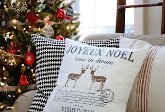 Entonces pensé que la semana debía acabar con una buena dosis de decoración navideña ¿No crees? Y esta casa rustica es perfecta, su decoración es tradicional tirando de hojas de arboles, color rojo mezclado con blanco y toques negros, a sabido traer todo lo tradicional de la decoración con ciertas notas de risa como los cuernos de la vaca, si si, son de un ciervo y se lo han puesto a una vaca , fijaros es muy gracioso.