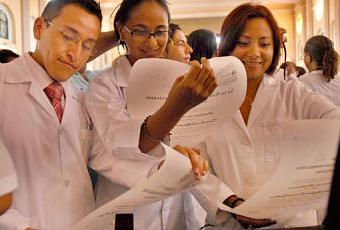Un total de 250 estudiantes cubanos y de 21 países recibieron en La Habana sus títulos de licenciados en Medicina, Enfermería y como técnicos de salud, acompañados de caravanistas de Pastores por la Paz