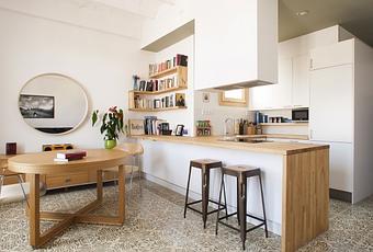 En los últimos años hemos vivido una nueva corriente en cuanto a cocinas, pasando de las cerradas completamente a las conocidas como “americanas” en las que el espacio se fusiona y la cocina interactúa con el comedor o incluso el salón. A mi al principio no me convencía mucho, principalmente por el tema estético seguido por las olores, pero después de haber vivido en pisos con cocina americana, me he dado cuenta que no suponen un inconveniente, ya que actualmente los extractores son lo suficiente potentes como para tener resuelto ese aspecto. En cuanto al estético, qué decir… Después de la cocina que os muestro hoy, queda bien demostrado que a nivel estético se pueden conseguir unos diseños preciosos, que más que esconder da gusto mostrar, y la verdad es que se gana mucho en cuanto a la relación familiar, a mi me encanta estar cocinando mientras hablo con mi pareja que está en la barra o en el sofá…