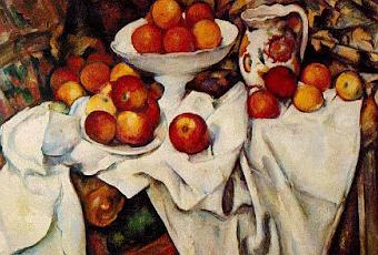 Imagen: Paul Cézanne. "Bodegón con manzanas y naranjas". 1895.
