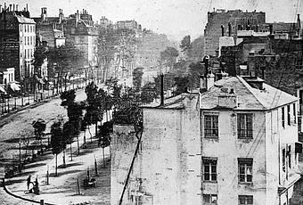 (c) Louis Daguerre. Boulevard du Temple. Paris, 1838. Se cree que es la primera fotografía en donde aparecen personas en un espacio público.