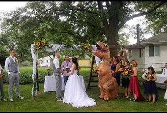 Una dama de honor se presenta a la boda de su hermana disfrazada de T-Rex