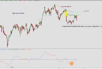 Se aproxima a niveles 24.34 euros, donde configura una resistencia horizontal bastante evidente, luego cruces por encima de dicho nivel, invitan a la entrada de dinero y posibilidad de nuevo impulso alcista, pero todavía habré que esperar si finalmente decide atacar dichos niveles de cotización. Por mi parte, sólo un cambio más, y es que subo el stop loss hasta los 23.80 euros. Recuerden las distintas técnicas y consejos a la hora de aplicar un stop loss en nuestro artículo: fundamentos de los stop loss.