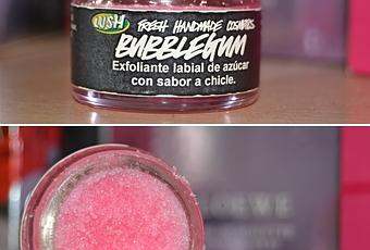 Exfoliante labial de chicle: lo compré para evitar esos pellejitos que salen muchas veces después de aplicar un cacao o barra de labios. Lo aplico antes de pintármelos, y tengo que decir que no me han vuelto a salir, así que encantada! Después de frotar los labios, lo que sobra se puede comer porque es azúcar (un peligro!) y además sabe a chicle^^