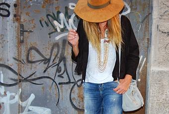 La he combinado con los últimos jeans destroyed, ( prohibida moto ) , sandalias love total print, bolsito rebajil de este verano, y dando el toque , mi nuevo collar de Torques Complementos , que os puedo asegurar, que es un amor de collar. Hago , verdaderos esfuerzos para no colocármelo todos los días. Y como no, sombreriti..,