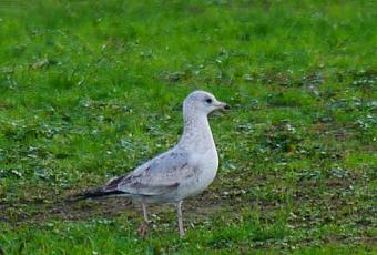 Y además junto con ella e integradas en el grupo de gaviotas se alimentaban también cuatro ejemplares de gaviota cana Larus canus, también de primer invierno, con las que se puede comparar a nuestra Delaware para ver sus diferencias.