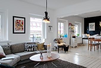 Comenzamos la semana con un piso sueco de 77 m² y una de mis distribuciones favoritas salón, comedor y cocina unidos en un espacio diáfano. Este piso está lleno de detalles e ideas decorativas para guardar directamente en la carpeta de favoritos. Desde esas lámparas tan originales e inesperadas en el salón y sobre la mesa de comedor, como el papel de pared negro con círculos grise,s que delimita todo el espacio de trabajo en la cocina o el banco con cojines sobre un par de armarios bajos en la cocina también. Atentos al detalle humorístico del espejo torcido en el salón y a la estantería que hace las veces de perchero en la entrada. Un piso con una distribución perfecta pensada para disfrutar de casi toda la vivienda en cualquier momento.