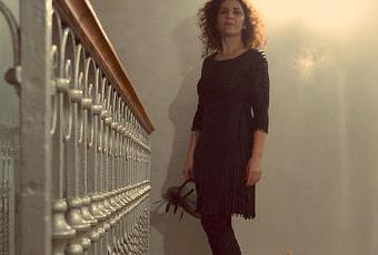 Me apetecía mucho hacerle las fotos en la entrada de su casa, tiene un encanto tremendo, entre la balaustrada dehierro y esas baldosas hidráulicas, creo que fue el escenario perfecto.