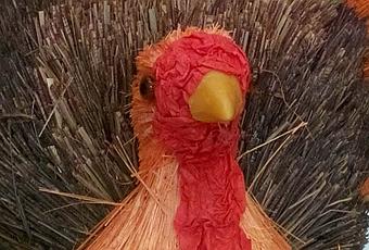 Paso 6. Pega el pico en el frente, y arruga el papel cebolla rojo, dándole la forma para hacer la cresta y moco del pavoPaso 7. Pega los ojitos