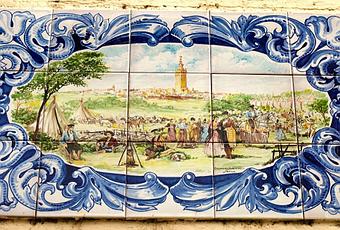 Aprovechando la clausura esta noche de la Feria de Abril de este año, traemos al blog este azulejo que está situado en la Calle Santa Teresa, en la fachada del establecimiento "Antigüedades Santa Teresa".