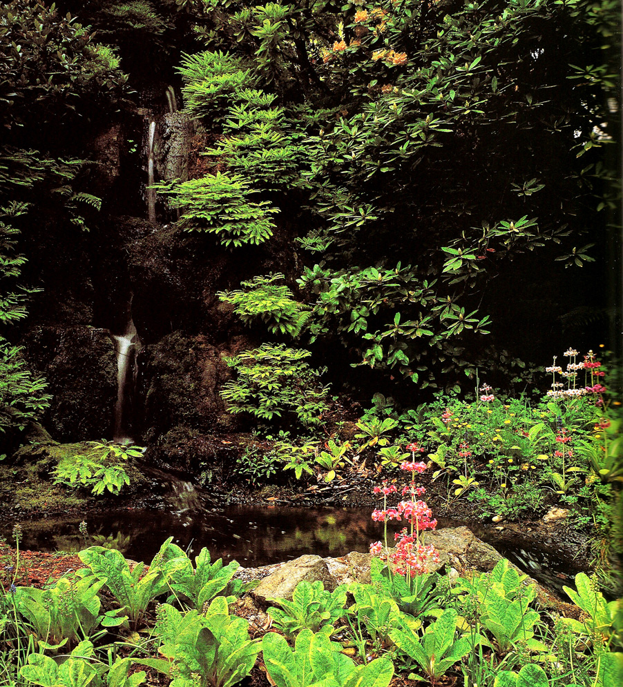 La vegetación exótica en el entorno pantanoso. Bloedel Reserve. Foto: Dick BusherEl recorrido de la Reserva Bloedel había que realizarlo necesariamente a pie y se iniciaba en una pequeña caseta de recepción que aprovechaba un antiguo cobertizo, junto a la verja de la entrada. Un punto de acceso que abría la vista hacia un recinto de varias hectáreas que seguramente habría sido cultivado en el pasado y entonces estaba cubierto de una ligera hierba uniforme. Desde allí partía un sendero atravesando un prado, cuyo pasto alto y agostado permitía ver en sus laterales y en el fondo lejano la presencia del bosque natural, con una disposición dispersa y aleatoria de coníferas, pinos ponderosa, abetos, etc.A medida que nos íbamos aproximando al telón boscoso, la vegetación empezaba a densificarse y hacerse más umbría. En un momento dado entraríamos en el follaje de aquellos inmensos árboles de hoja perenne. Allí atravesaríamos un conjunto de estanques y zonas pantanosas en las que se podía oír el canto de los pájaros y sentarse en unos bancos dispuestos estratégicamente para disfrutar de las vistas pintorescas. Posteriormente, accedimos por su lado más estrecho a un espacio rectangular abierto en medio de las altas coníferas, que se componía de un seto de boj perfectamente recortado y un estanque rectangular alargado que permitía percibir al fondo las nubes y la luz grisácea del cielo. Fue un momento excelso al pasar repentinamente de la oscuridad sombría a la luz esplendente y que disfrutaríamos con intensidad.
