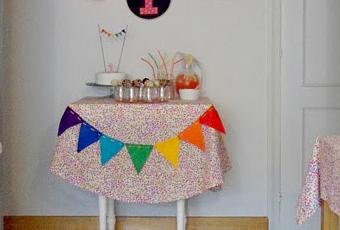 El caso es que siempre que pensaba en su primera fiesta sabía que tendría mucho color, así que usar como tema el arcoiris resultó ser una buena idea. Con unos pocos elementos bien elegidos sería suficiente para conseguir el ambiente festivo que necesitábamos: mis guirnaldas de fieltro multicolor por aquí y por allá, platos y cuencos de Ikea, manteles con estampado de confetti, pajitas y servilletas de intensos colores...y muchos globos!