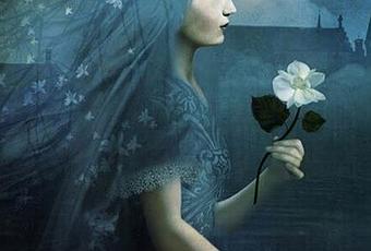 Ilustración Christian Schloe.-James Joyce-Frágil la blanca rosa es y frágiles sonLas manos que la dieronSu alma está marchita y es más pálidaQue la difusa onda del tiempo.Como la rosa frágil y hermosa: aún más frágil esEl silvestre prodigioQue en tus ojos ocultas,Mi pequeña de azuladas venas.