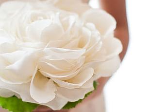 Esta novia ha optado por llevar una sola flor, grande, como ramo de novia, espectacular. Vía: stylemepretty