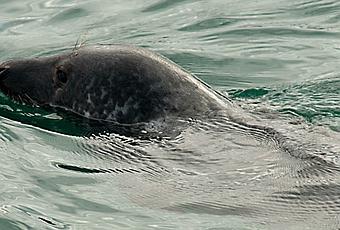 Cachorro de foca gris sin restos de aparejo. 20/01/14. Foto: Ricardo BascoyPero lo que parecía imposible finalmente se produjo, y ayer a última hora, Ricardo Bascoy observó una foca que nadaba en la misma dársena y que no tenía restos de aparejos. Sólo quedaba confirmar que se trataba del mismo animal, ya que otra foca gris de la misma edad también estaba por el Musel, aunque frecuentaba otras zonas.