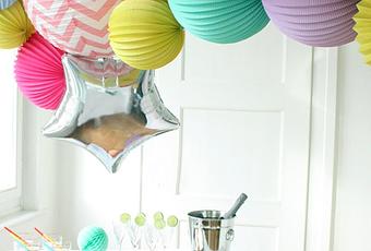 Da igual si es boda, ascenso o lo que es mejor en los tiempos que corren UN TRABAJO, unas copas de cava, vino gin tonic y un montón de pompones y bolas de papel de seda, nido de abeja o similar, una combinación bonita, colores pastel, azules y verdes, grises, amarillos, corales, rosas... incluso metalizados que están muy de moda y solucionado... tu mejor sonrisa y ... CHIN CHIN!! QUE EMPIECE LA FIESTA!