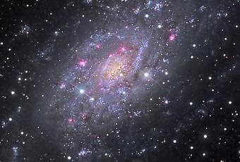 Ésta es una magnífica vista obtenida por Tom Harrison y expuesta en su web Mano Prieto Observatory. Sobre la base de estudios realizados de las fuentes de rayos X existentes en ésta galaxia, se ha sugerido que ha podido haber experimentado recientemente un brote estelar. Esto se contradice, sin embargo, con otros estudios que muestran que la tasa de formación estelar de NGC 2403 es 100 veces menor que la de la M83 y 40 veces menor que la de la M51, así cómo por la presencia en ella de las grandes regiones de formación estelar mencionadas. En NGC 2403 se han observado dos supernovas SN 1954J y SN 2003dj. Fue descubierta por William Herschel en 1788. Detalles técnicos