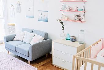 Una habitación para Ella…un espacio con pequeños detalles, funcionalidad y personalidad propia…. ¡Inspiración nórdica! …. muebles con ese toque, como la Cuna: Ikea de estilo sencillo, y un montón de artículos para decorar cada rincón con amor, como…Baldas: Smallable / Nube Aplica: Ferm Living / Decoración: LesFleurs/ Cómoda, columna y armario con cajas mimbre: Ikea / Luna móvil, cojines: Monbebecheri….. desde luego, en este cuarto no le falta de nada, y con pequeños cambios….se puede ir adaptando a las etapas de crecimiento.