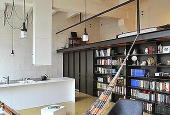 Hoy te presento el piso perfecto para él. Un loft muy masculino donde la hamaca es la gran protagonista.