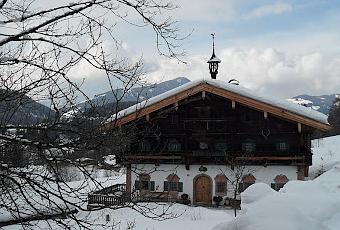A punto de comenzar la primavera, les muestro una imagen invernal. No me pude resistir. Una amiga me ha enviado unas fotos de una casa fantástica. Está en Kitzbühel, en el Tirol, en Austria. Este tipo de casa se utilizaba antiguamente para las personas que trabajaban en el campo. La mitad de la vivienda estaba destinada a los animales y en la otra mitad vivían las personas, alrededor de cincuenta, que trabajaban las tierras. La casa es muy grande, así que la mitad, en la que estaban los animales, se transformó en apartamentos que alquilan a quienes van los fines de semana a esquiar. La otra mitad la vive la familia y de vez en cuando, como es el caso, también los amigos.