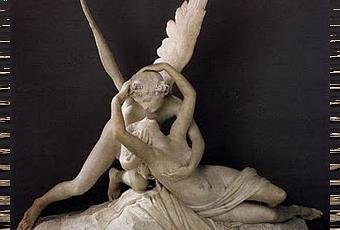 Apuleyo narra así en su Asno de oro como Afrodita, celosa de la mortal y terrenal belleza de Psiqué, y debido a que los hombres empezaban a abandonar los altares para venerar bellezas efímeras, envió a su hijo Eros para que disparando su flecha enamorara a Psiqué del hombre más feo del mundo. Lejos de esto Eros de enamoró de la bella princesa. La historia no termina aquí, pero creo que solo nombraré, que según Apuleyo, estos tuvieron una hija, Hedoné (placer).