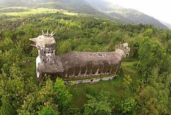 Elevándose por encima de los árboles en una zona boscosa densa de Indonesia se encuentra un pollo gigante. La gigantesca estructura tiene el cuerpo, la cola y la cabeza del ave, incluso manteniendo abierto su pico en lo que parece ser en medio de un graznido. Aunque la muy antigua ave está decayendo rápidamente, Gereja Ayam (como lo llaman los lugareños) atrae a cientos de fotógrafos y viajeros a su ubicación en Magelang, Java Central, cada año ellos buscan explorar el interior bizarro del ave.