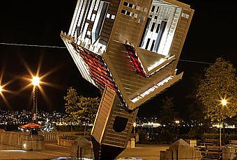 Parecece que se confirma que ¡el mundo se ha vuelto loco!. Ahora podemos afirmarlo casi con total seguridad, después de ver una iglesia que está puesta del revés.No es broma, aunque tampoco es realmente una iglesia (al menos no está consagrada como tal). En realidad se trata de una escultura ubicada en Vancouver (Canadá). Esta obra tiene nombre propio: “Device to Root out Evil” (Dispositivo para Erradicar el Mal).Su creador, el estadounidense Dennis Oppenheim, ha sido uno de los artistas contemporáneos más destacados del panorama artístico internacional. Fallecido en el mes de enero de 2011, este escultor destaca como pionero de “performances”, siendo uno de los precursores del arte conceptual.La iglesia de la que hablamos, mide casi 8 metros de altura y está construida mediante una estructura de aluminio cubierta de placas rojas y cristales azules que reflejan el sol.Es una obra, cuanto menos, chocante y transgresora. Parece claro que una iglesia es un perfecto dispositivo para erradicar el mal, pero… ¿puesta del revés? Evidentemente es una paradoja, un guiño creativo que consigue hacernos sonreir.La escultura, en equilibrio sobre el campanario, se exhibió por vez primera en el año 1997 y, desde entonces, han aparecido varias réplicas como las que se pueden ver en Santa Catarina (Brasil), en Venecia (Italia) o en Palma (Santa Cruz).Via