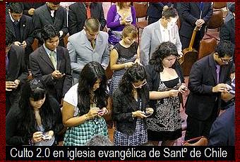 Nada de apagar los móviles a la entrada. En la Catedral pentecostal de Santiago Centro, en Chile, el pasado domingo, el uso de la tecnología no sólo estaba permitido, sino que se fomentó gracias a la tecnología Wi-fi y Bluetooth. Las lecturas bíblicas, el esquema del mensaje o las letras de las canciones eran enviadas en tiempo real a los dispositivos de cada asistente.
