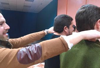 Afición es para mi aquello que me motiva, me emociona, me llama, por lo que disfruto, no me supone nada forzado y el mundo del costal lo es.Suelo alejarme y mostrar indiferencia a radicalismos y formas extremas de pensamiento sea de la índole que sea, política, dialéctica, religiosa, en el deporte...; me incomodan los procederes que se salen de los términos del raciocinio y la mesura. Escapo de las absurdas disputas y del enaltecimiento exacerbado. Yo voy a lo mío; y lo mío no es otra cosa que juntarme con mis amigos, trabajar en equipo, contribuir a que nuestra "sala de máquinas", como suelo decir, funcione y cómo no, a que cada momento ahí debajo sea inolvidable y sume para el libro de los recuerdos. Y puedo decir que este libro ya cuenta las pastas corroídas por el tiempo. Serán 27 años, si Dios quiere, los que tengo la inmensa dicha de pertenecer a esta cuadrilla de costaleros. Y para este post, he elegido una imagen muy representativa. Mi cuñado Manolo, capataz admirado, respetado y más que consolidado pese a su juventud, que lo es de, la considerada, por entendidos y los no tanto, como la mejor cuadrilla, iguala a dos costaleros también representativos. Mi hermano suma 26 años de costalero y Eugenio 30, ahí es nada.