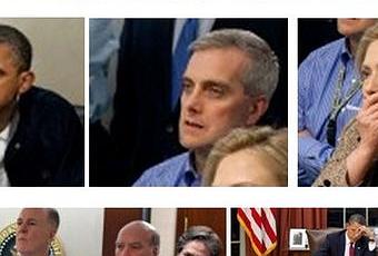 De las 8 fotografías que la Casa Blanca ha pasado a la prensa, las expresiones de los allí presentes, viendo (quizá en directo) la muerte decretada de Osama Bin Laden, expresan cualquier cosa menos la supuesta alegría de estar haciendo o que se haya hecho justicia, o desde luego algo más que el posible temor por lo que les pueda suceder a los ajusticiadores.