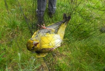 Un grupo del cual anillamos varios individuos fue el de los fringílidos, en concreto 3 ejemplares. El más guapo fue sin duda un macho de verderón común Carduelis chloris, que resultó ser un ave de primer año. Aquí podemos ver el proceso completo, desde su captura en la red, pasando por la toma de medidas y su liberación final. Por supuesto, el proceso se realiza lo más rápido posible para evitar que el pajarín se estrese en exceso.