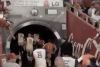 Ya habíamos visto en mi página de Facebook la imagen de una lavadora gigante en la entrada al túnel de vestuarios de un campo de rugby, pero aquí tenemos el vídeo explicativo. Un deporte super sucio como es el rugby, en el que los jugadores ensucian sus uniformes debido a las múltiples caídas al césped embarrado y mojado, ha de tener una buena lavadora cerca.