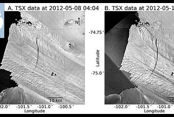 La grieta es una grieta que atraviesa aproximadamente 1000 pies (300 m) de hielo flotante de una típica plataforma de hielo antártica. Estas grietas son un precursor del desprendimiento de las plataformas de hielo, donde grandes trozos de hielo se desprenden de un glaciar y caen al mar. Estos eventos ocurren a menudo en el glaciar Pine Island, donde el iceberg observado en el estudio se separó del continente hace mucho tiempo.