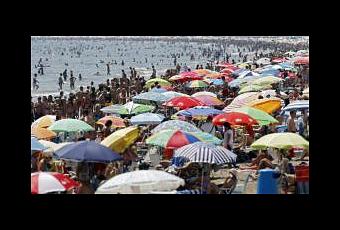 selvas buscando a Livingstone. Bueno, el caso es que cuando conseguimos un sitio a unos cuatro metros de las sombrillas vecinas empecé a montar el campamento para descubrir que cuando estaba abriendo la última silla ya tenía detrás, pegado al cogote una familia entera de esas de radiocassette y señora pringando vástagos con crema solar como quien unta nocilla en el bocadillo de los críos. Cuarenta grados a la sombra, arena, sol abrasador… más que la playa aquello parecía alguna escena de aquellas de Lawrence de Arabia pero concurrida, muy concurrida. Como todos los años, igualito. Supongo que las quejas por lo del turismo será en playas más glamourosas porque en las normalitas, de andar por casa, como esta no es que se note demasiado esto de la nueva normalidad para mayor espanto de nosotros, los aborígenes.