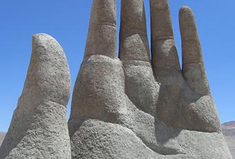desierto de atacama se te aparece una inmensa mano enterrada. Es como si un gigante estuviera intentando salir de la tierra, o como si una tormenta de arena lo hubiese dejado atrapado y no pudiera escapar.