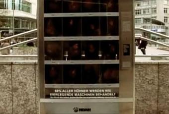 Noah, para denunciar las malas condiciones en las que son tratadas las gallinas en algunos criaderos y para potenciar el consumo de huevos de granjas responsables, plantó esta máquina de vending llena de gallinas en una calle de Frankurt. Con esto, pretendían hacer ver que estos animales son tratados como verdaderas máquinas expendedoras de huevos. Una buena idea, la única parte mala que le veo es tener hacinadas a estas pobres gallinas durante horas en la maquinita...