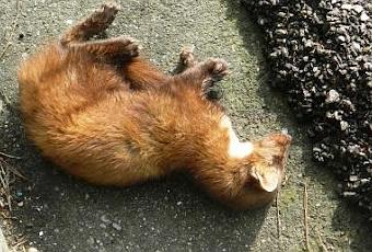 Esta tarde por la misma zona me he vuelto a encontrar con otra marta atropellada, por desgracia este ejemplar estaba muerto y bien muerto.
