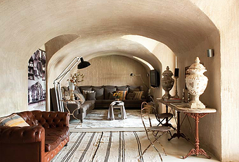 En cuanto a la decoración, Eva Martínez decidió apostar por una medida mezcla de estilos, en la que son básicas las antigüedades y las obras de arte contemporáneo. Los tonos neutros y los acabados envejecidos logran un fondo perfecto que hace de nexo entre las piezas de procedencia industrial, las vintage y las realizadas a medida, como los sofás, las camas y los muebles del comedor... En el manejo de este mix, en el que el neorrústico chic de la cocina dialoga con la sobriedad casi monacal de los dormitorios y la espectacular puesta en escena del porche, reside la llave de un universo único y de fuerte personalidad.