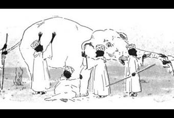 Figura 1: Los ciegos y el elefante: el exceso de simplificación oculta el cuadro completo. Pero a diferencia de los ciegos de la parábola, las medias verdades dichas durante la covid provienen de quienes conocen la mentira completa pero quieren evitar que veas todo el elefante.