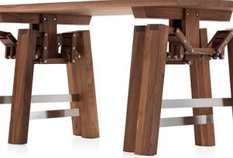 A través de un complejo mecanismo se ha conseguido crear una mesa que al empujarla se mueve con sus propias patas. Se arrastra y se contonea como un monstruo de madera a nuestros servicio. No te preocupes, no se trata de una mesa que vaya a huir justo antes de servir la cena. Si no la empujas permanece en su sitio.