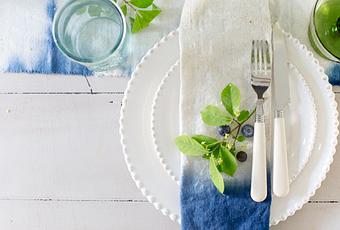 Una vez tenemos teñidos y secos nuestros textiles tan solo tendremos que colocar la vajilla, cubertería y cristalería.