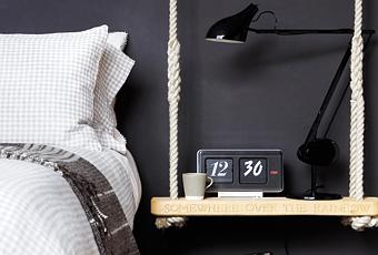 ¡Como lo oyes! Se trata de un columpio de madera de toda la vida convertido en mesilla de noche y así de bien queda. Nunca se me hubiera ocurrido hasta que lo vi en la web inglesa Easy Living y la verdad es que me parece una idea original y con mucho estilo. Según comentan es sencillo de hacer, únicamente hay que poner dos ganchos fuertes en el techo, un par de cuerdas, una tabla de madera y elegir la altura adecuada. En este caso, la deco del cuarto también contribuye al encanto del columpio convertido en mesilla con el color oscuro de la pared que hace de cabecero, los cuadros de mariposa y el puff a los pies. ¡Mirad que bien queda!