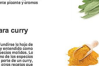 La hoja de curry tiene un sabor suave y ácido al mismo tiempo, una mezcla de salvia y cítricos. Esta hoja proviene de un árbol tropical de la India, y se utiliza, como ya os podéis imaginar, para elaborar los currys indios, pero también para una gran variedad de platos de dicho país. Se puede utilizar fresca, deshidratada o molida. Os explicamos los secretos de la planta de la que tantas recetas han salido después en esta píldora Cocinista. Encontraréis más información en la entrada de nuestra Enciclopedia.
