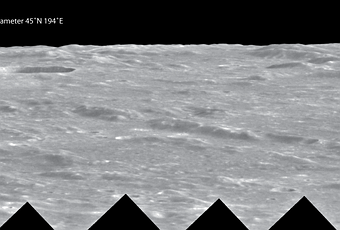 La sonda MESSENGER, en concreto la cámara NAC, ha enviado hasta ahora unas 75.000 imágenes en una misión que se alargará hasta marzo de 2012. La segunda imagen es una comparación entre la vista oblicua y una cenital para situar la orografía de la zona: la Formación Van Eyck. Clic para ampliar.
