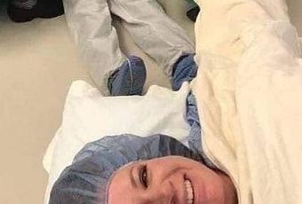 La madre, aún tapada con una sábana y con un gorro que le recoge el cabello, se ríe de la situación mientras fotografía a su marido rodeado por el personal médico, uno de los cuales sostiene en brazos al recién nacido. Por lo visto, dejar que su marido asistiera al parto no fue la mejor idea.