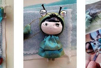 An artistic brooch & necklace doll dressed like a dragonfly: Mageritdoll