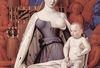 El más grande pintor francés del siglo XV fue Jean Fouquet (1420-1481). Situado entre el gótico tardío y el renacimiento, es considerado el iniciador de la escuela francesa de la pintura. Educado en Italia, donde desarrolló gran parte de su obra. En 1450 le encargaron un díptico, el Díptico de Melun, del cual una de sus tablas es la representación de la Virgen María con el Niño. Es un cuadro muy curioso. De colores significativos y determinados. Las figuras principales son de un blanco virtuoso y puro, los ángeles de un tono azul o rojo, dependiendo que fuesen querubines o serafines.