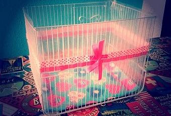 Bueno...pues su jaula era pequeña pero lo suficientemente útil como para convertirla en una papelera monisima que me va a servir un montón en mi nuevo lugar de trabajo...además de tener su jaula conmigo de alguna forma...(me daba mucha pena tirarla a la basura..), y es como tener un recuerdillo de él...
