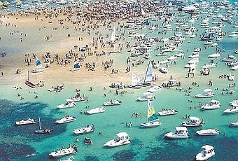 La isla Areia Vermelha está situada a 2 km de la ciudad brasileña João Pesso (700.000 habitantes). El número de habitantes es importante para hacernos una idea de la cantidad de turistas que pueden llegar diariamente. Otro dato a tener en cuenta es que la isla “sólo” aparece cuando baja la marea (20 días al mes).