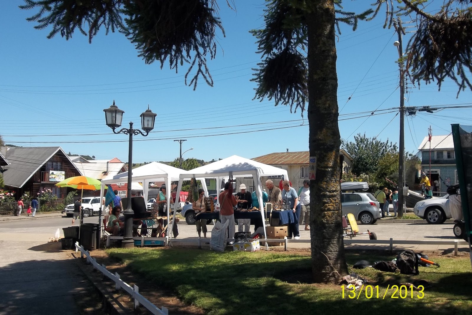 Puestos de artesanías en la Plaza (principalmente de manos tejedoras)